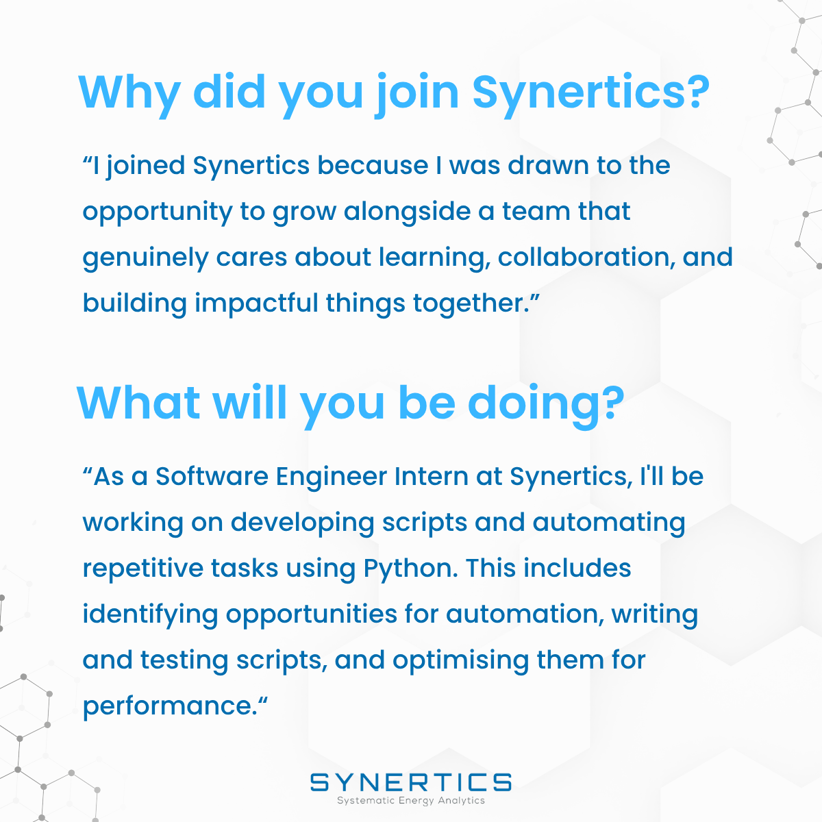 Learn more about why Tiago joined Synertics and what he'll be working on.