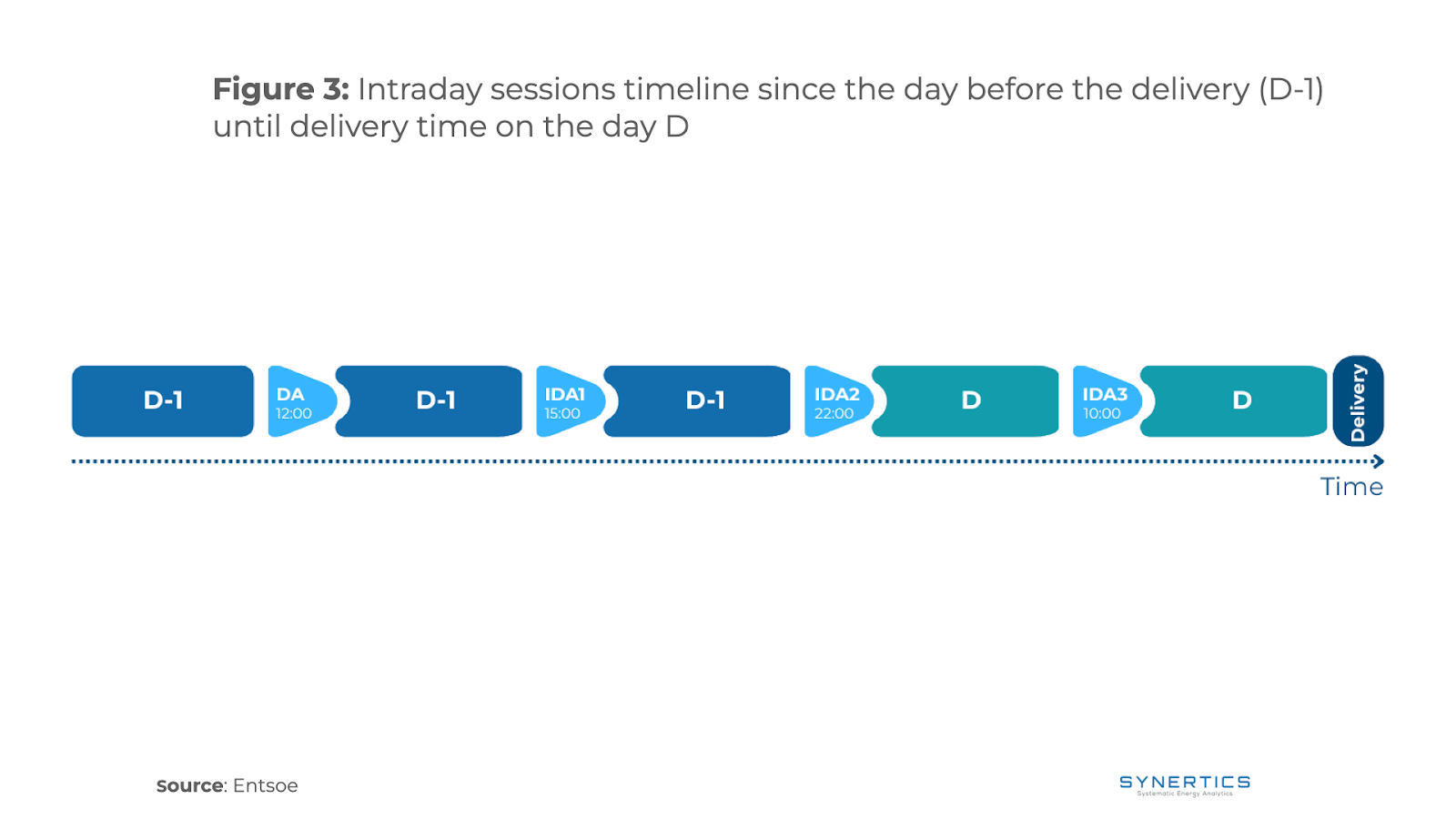 Beyond time resolution differences, intraday markets are further categorised into continuous intraday trading (ID) and intraday auctions (IDAs). These two mechanisms are described in more detail in the following sections.